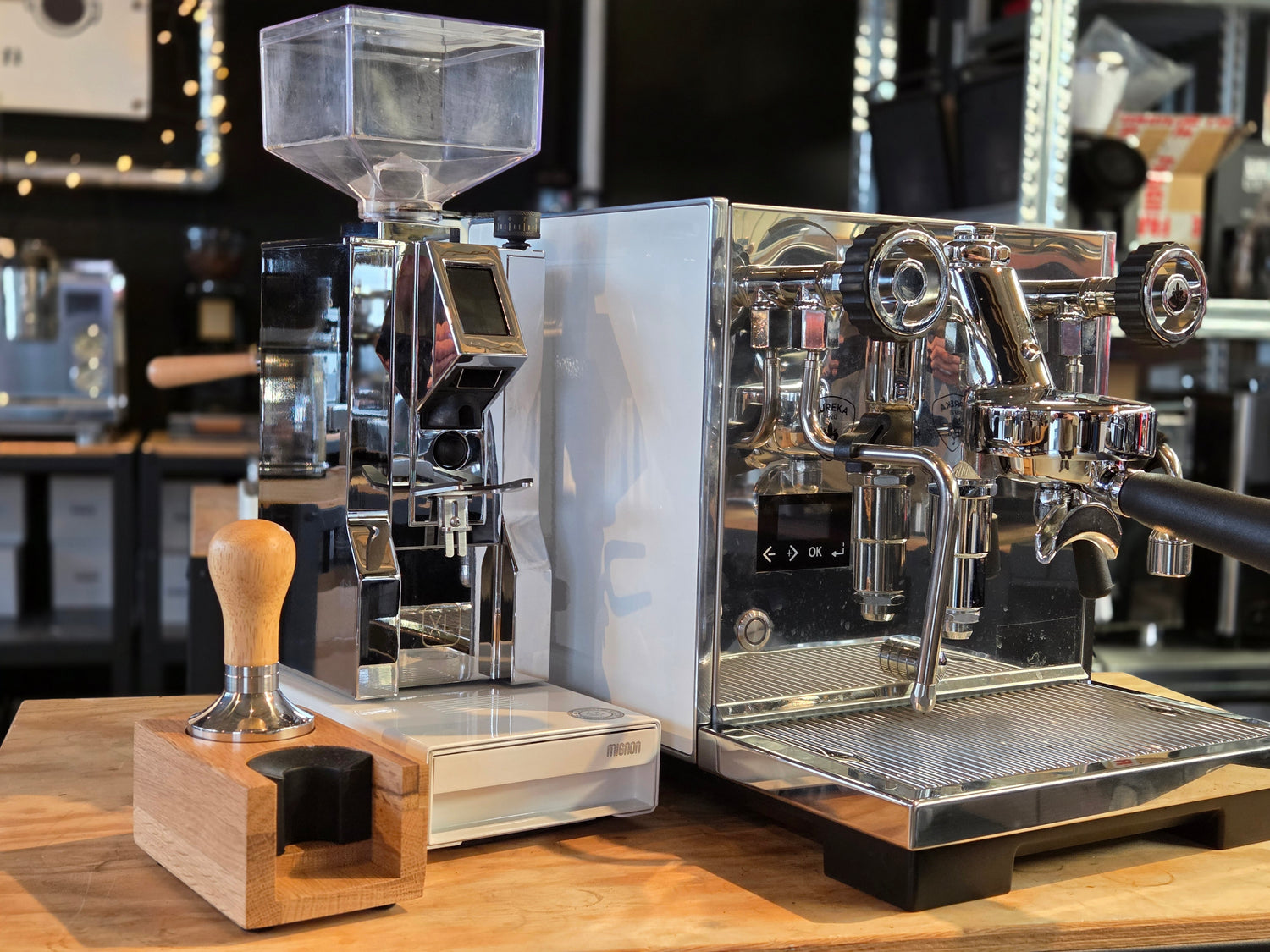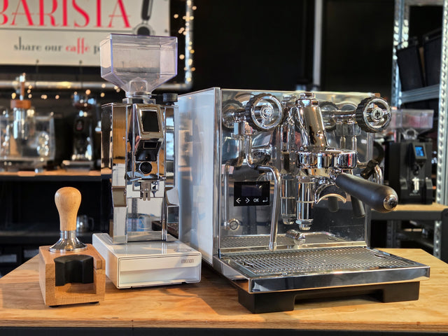 We traded in this Crem One machine for a nice upgrade to a rotary pump machine. The Crem One 2 is equipped with a double boiler and a vibration pump. Despite this pump, the machine can still be connected to a fixed water supply. Furthermore, the Crem has an extensive PID where the temperatures can be adjusted and the shot timer can be read.