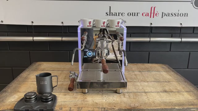 Traditionele dual boiler (E61) zetgroep techniek in combinatie met hypermoderne bediening en extreem nauwkeurige besturing. Uiteindelijk om de beste espresso of cappuccino te maken. De DE-versie komt met 5 knoppen die jouw shot automatisch doseren.