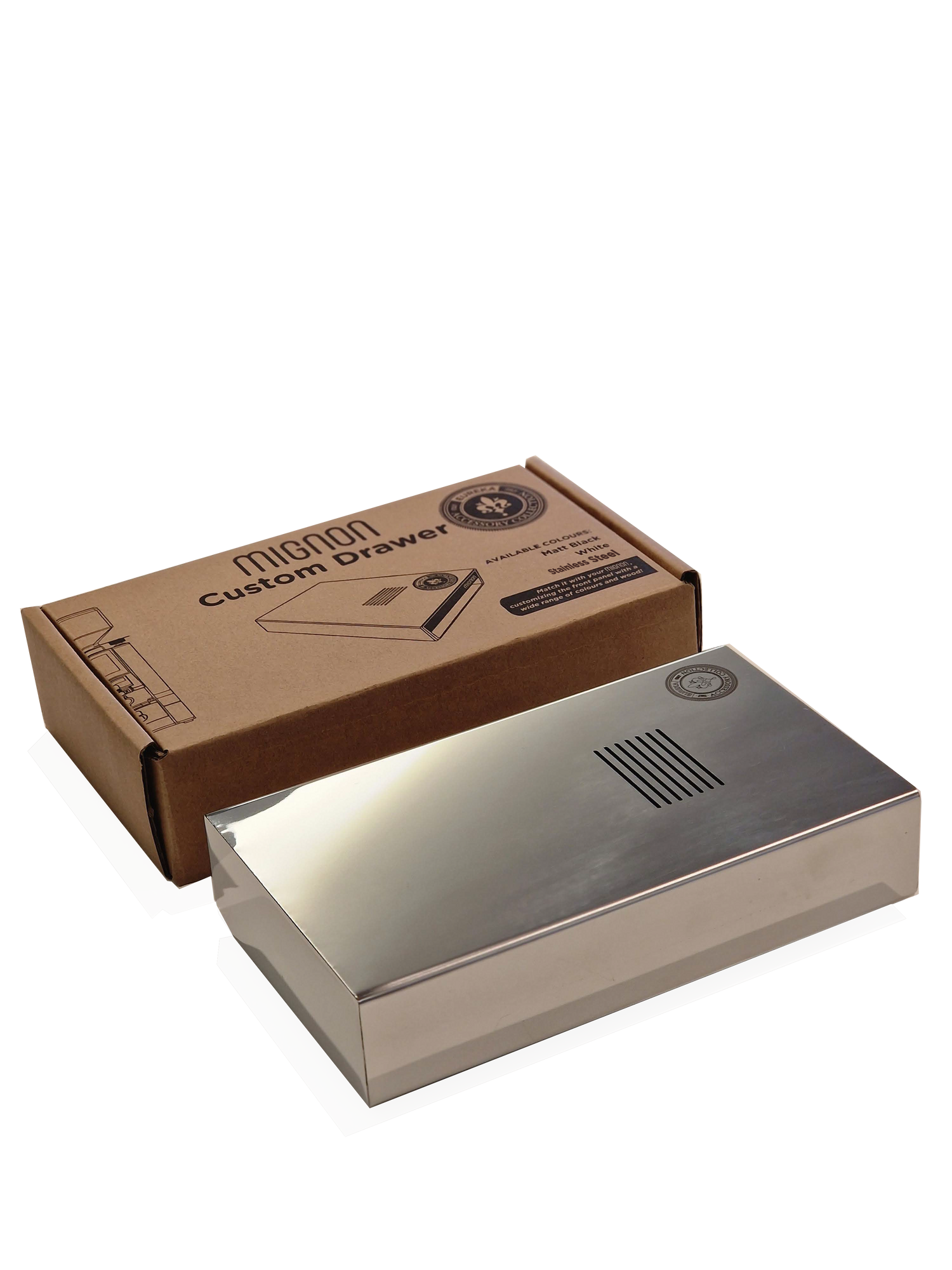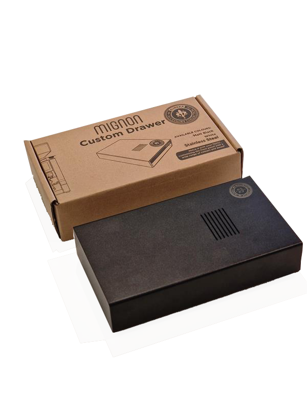 De Eureka Uitkloplade is van zwart roestvrij staal en heeft een compact ontwerp van slechts 5,8 centimeter hoog. Deze kloplade is ideaal te combineren met de Eureka Mignon molens of de LX Italia en Rocket Faustino. Aan de binnenkant zorgen de speciale kunststoffen ladegeleiders voor een soepele geleiding.