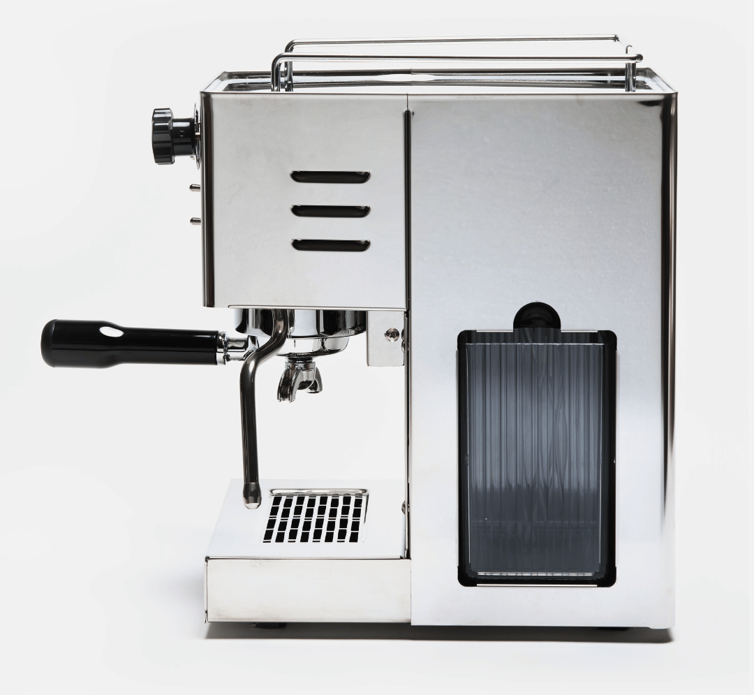 Handmatige espressomachine met hoogwaardig roestvrijstalen frame, ontworpen voor pure koffieliefhebbers.
